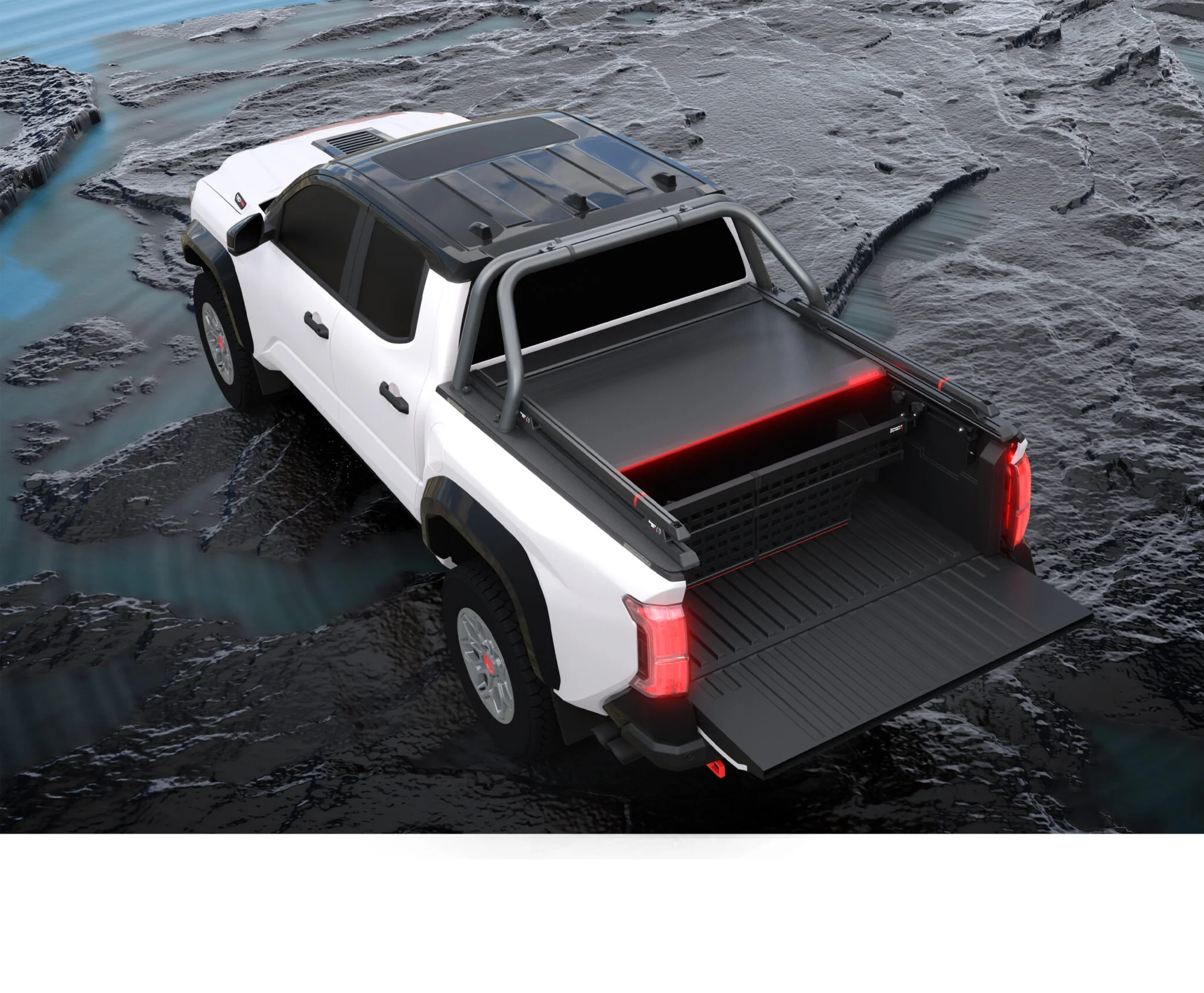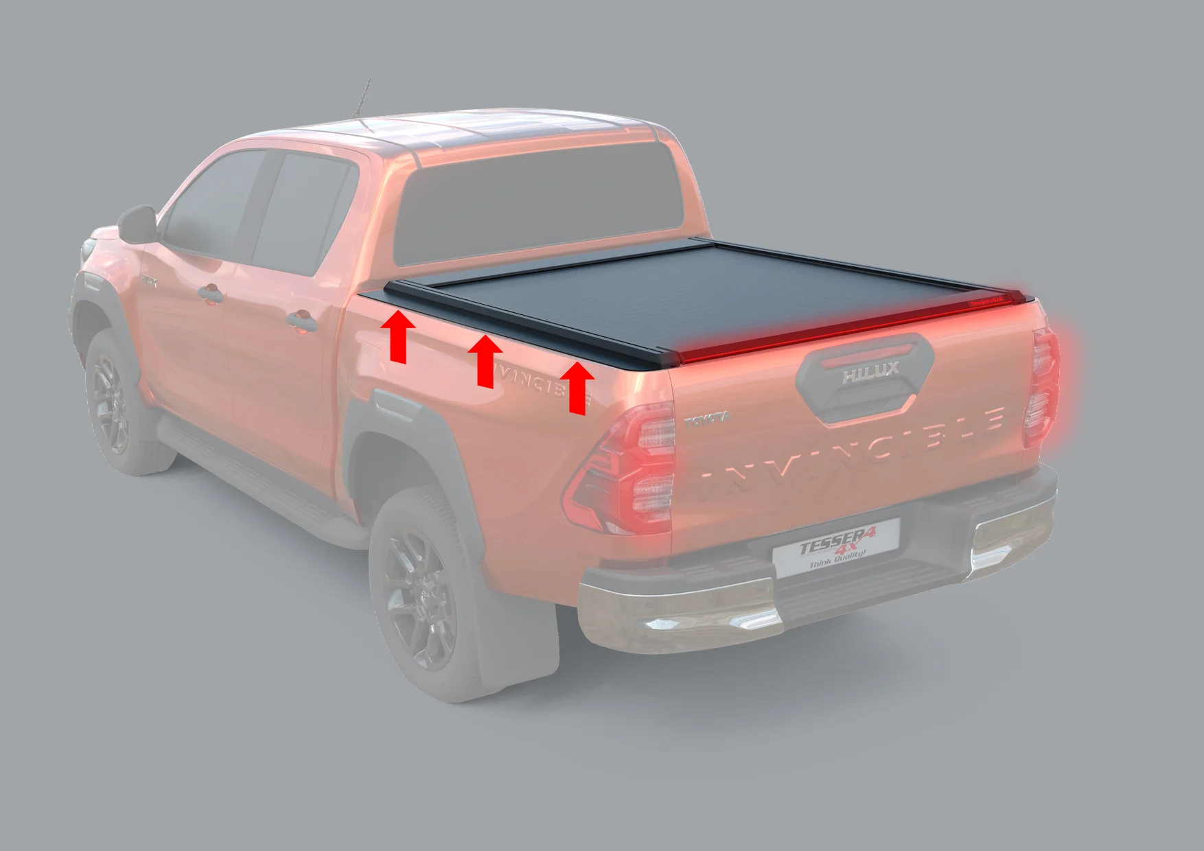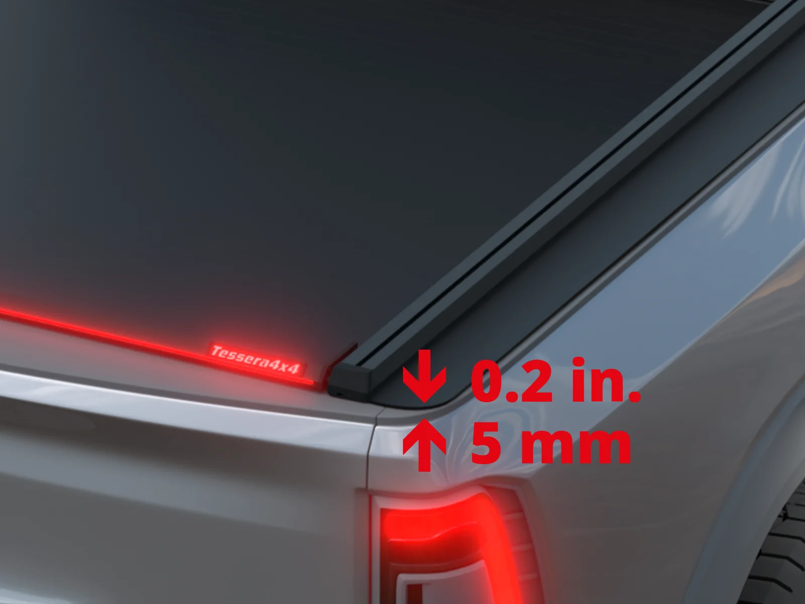 | ✓ Design Inovador e Compacto Com um design avançado, a lamela final se retrai suavemente para dentro da área do canister, juntamente com as menores dimensões de canister do mercado—apenas 20cm/7.8 inches x 23cm/9 inches (HxW) (ou 30cm/11.8 inches x 26cm/10.2 inches (HxW) para os modelos Space Cab/Single Cab/Americanos). Esta solução maximiza a capacidade de carga em comprimento e altura. Ao contrário dos concorrentes, onde a lamela final se estende além do canister, este design garante um uso mais eficiente do espaço sem comprometer a funcionalidade. | ✓ | ✓ | X |