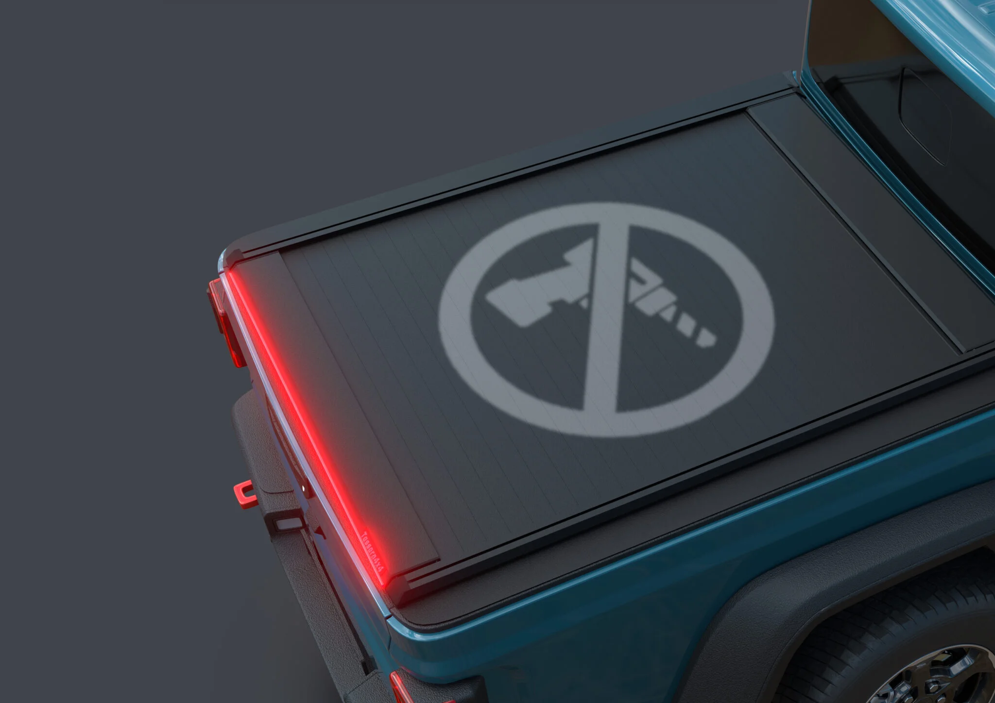 ✓ Controle de brilho da barra de luz vermelha e do logotipo. Ajuste o brilho da barra de luz vermelha com as luzes de freio e feixe do seu caminhão.